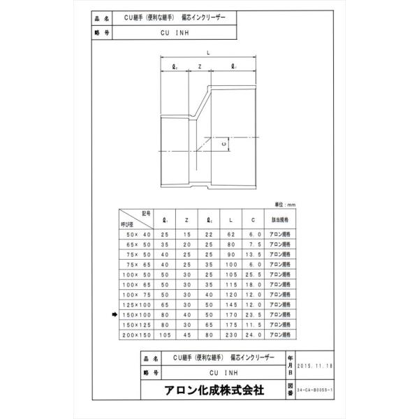 アロン化成 150X100 偏芯インクリーザー CU-INH 排水用塩ビ継手 VU継手