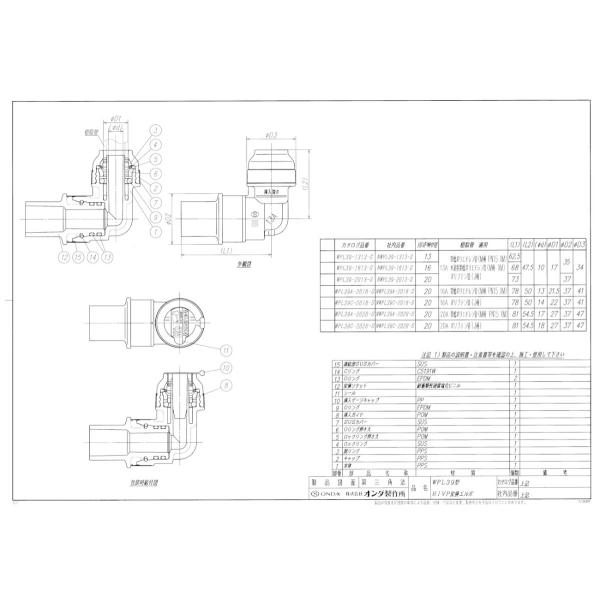 オンダ製作所 HI20x16A WPL39A-2016-S HIVP変換エルボ 架橋ポリ ダブルロックジョイント