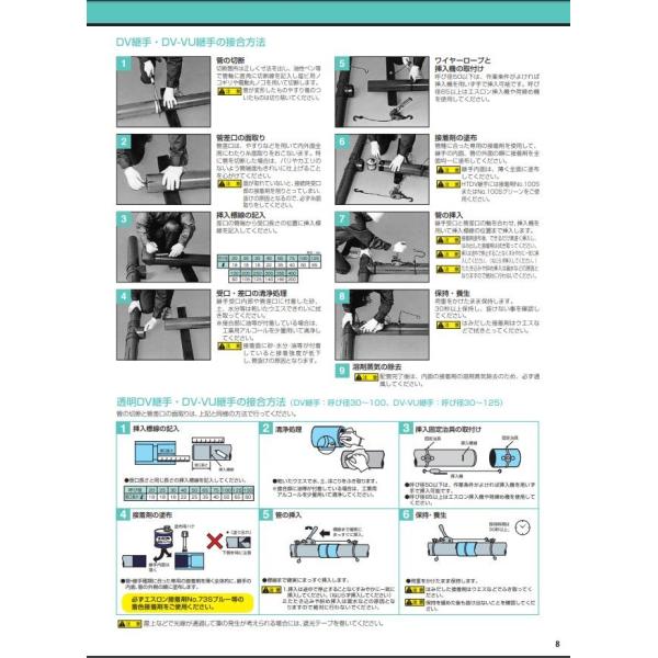 注意事項:エスロン透明DV継手・透明DV-VU継手には着色接着剤を使用してください。