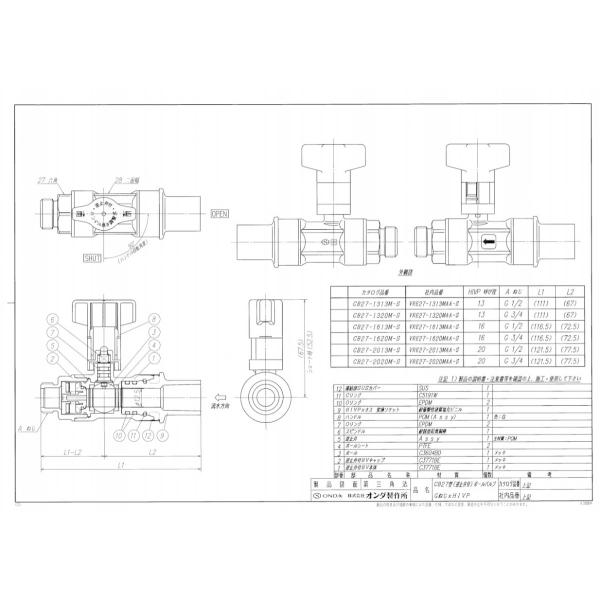 商品名:CB27型 HIVPxGねじ 逆止弁付ボールバルブ