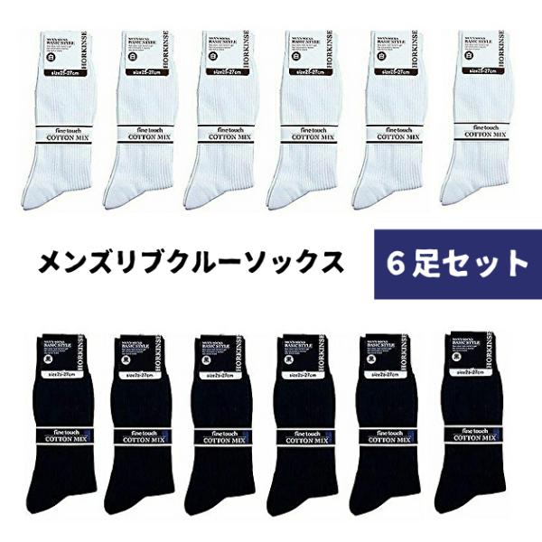 【6足セット】メンズ 靴下 リブ カジュアル ビジネス スクール ソックス 白 ホワイト 黒 ブラック