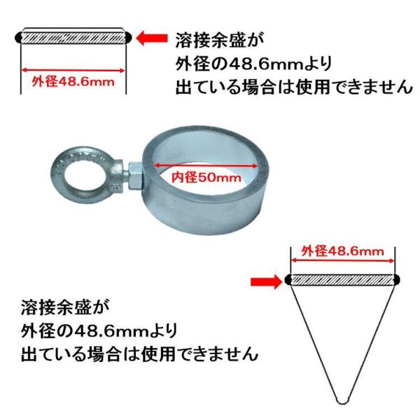 ・頭部の溶接部が外径の48.6mmより盛り上がっている一部の単管杭にはご使用出来ない場合があります。