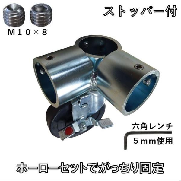 単管パイプジョイント φ 外径48.6mm用 キャスタータイプ・ストッパー付き(自在型)L型三方組付け用 SRK−100S
