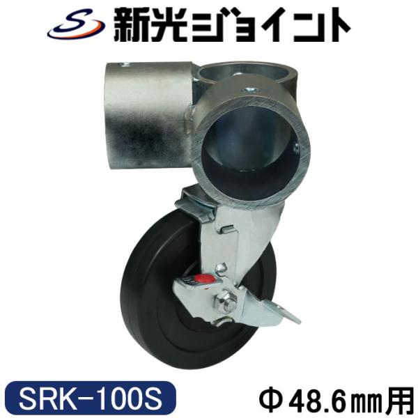 単管パイプジョイント φ 外径48.6mm用 キャスタータイプ・ストッパー付き(自在型)L型三方組付け用 SRK−100S