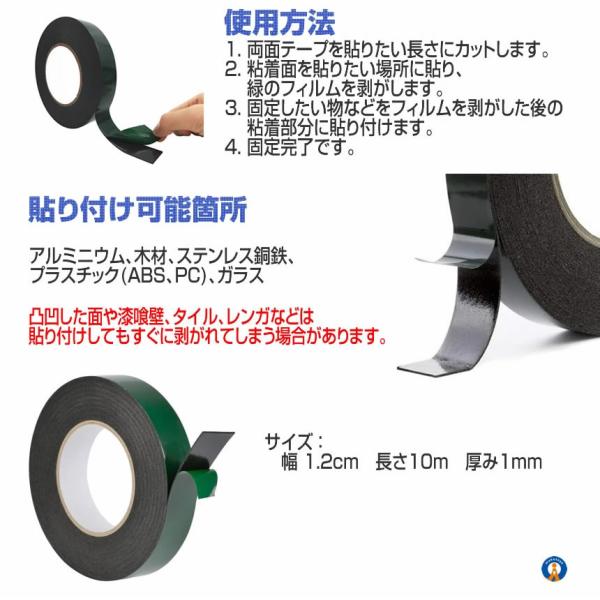両面テープ 超強力粘着力 太さ1.2cm 多様性 屋外用 固定 工具 長さ10m 壁 クッション DIY 車のエンブレム 収納ラック 車内装飾 工具の固定 RYOUMEN-1