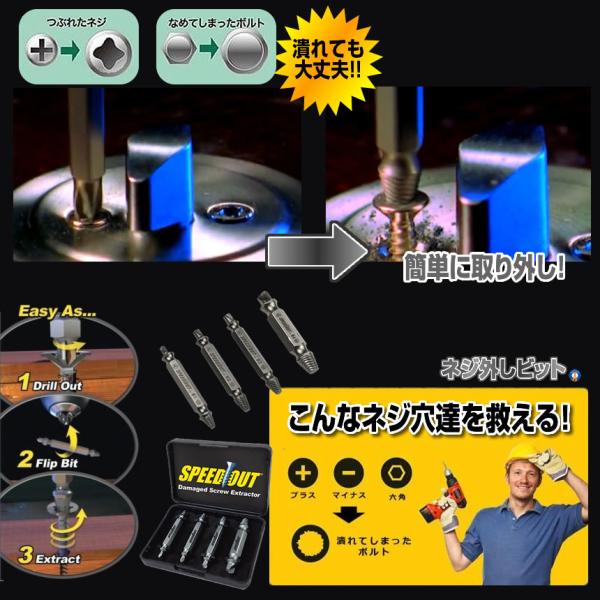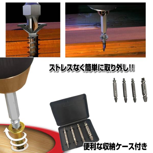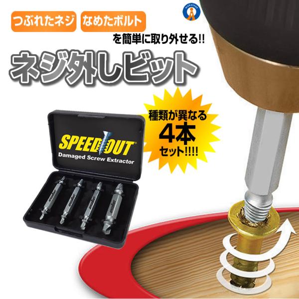 なめたネジ つぶれたネジ 外し ビット 工具 4サイズセット DIY なめたボルト ネジ外し ネジ切り先生 簡単取り外し 収納ケース付き DZ-1500