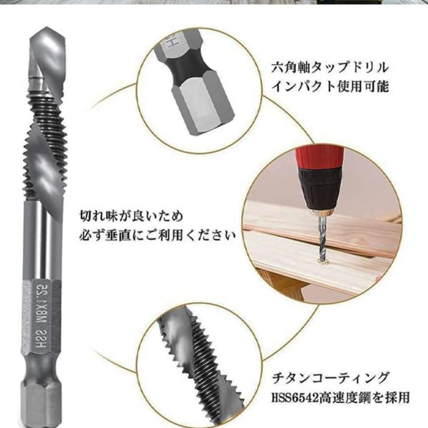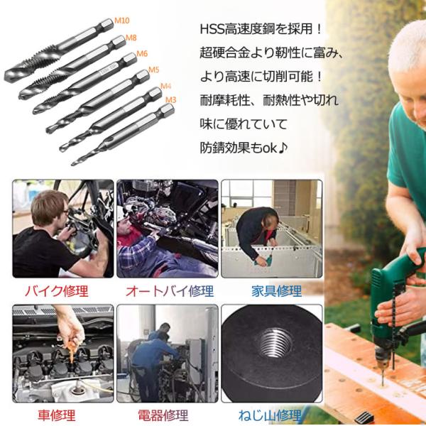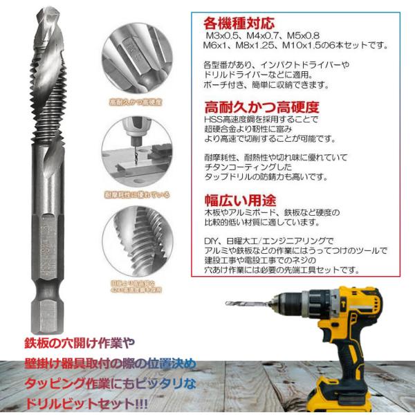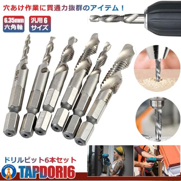 六角軸 ドリルタップ 穴あけ 工具 ネジ切り 6本セット M3 M4 M5 M6 M8 M10 DIY用品 ドリルピット 工具 日曜大工 便利グッズ 生活用品 工事 TAPDORI6