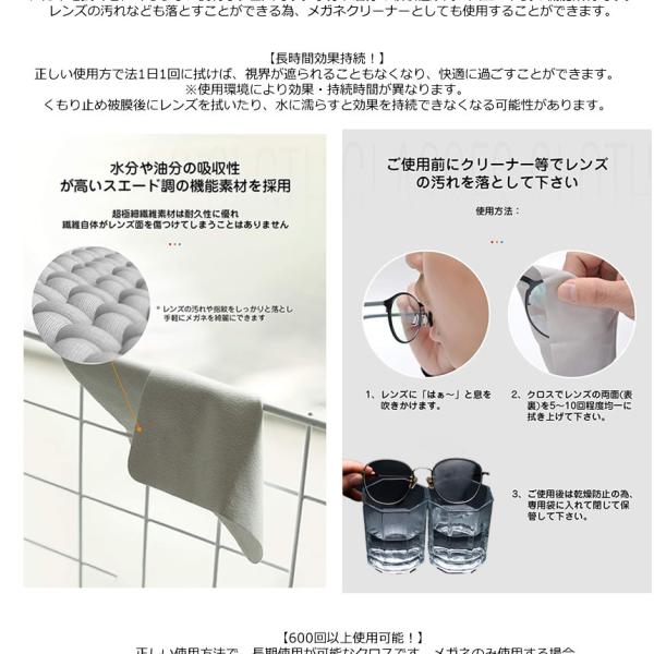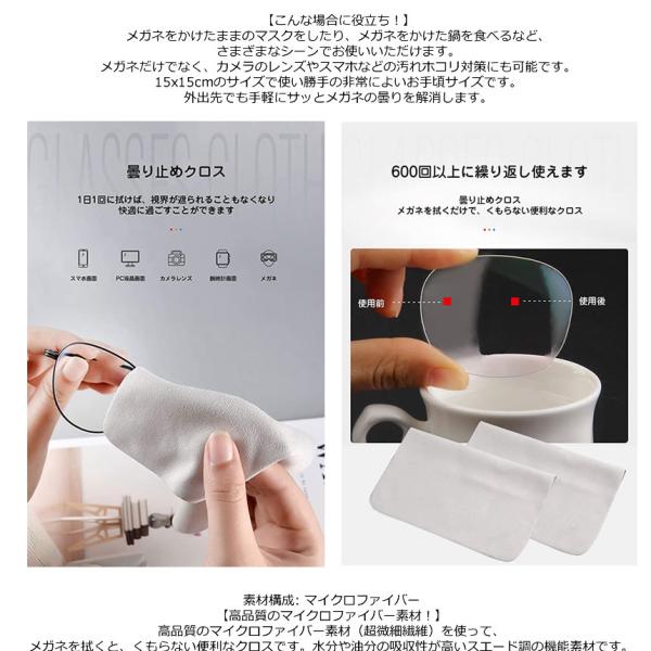 高品質のマイクロファイバー素材(超微細繊維)を使って、メガネを拭くと、くもらない便利なクロスです。水分や油分の吸収性が高いスエード調の機能素材です。レンズの汚れなども落とすことができる為、メガネクリーナーとしても使用することができます。