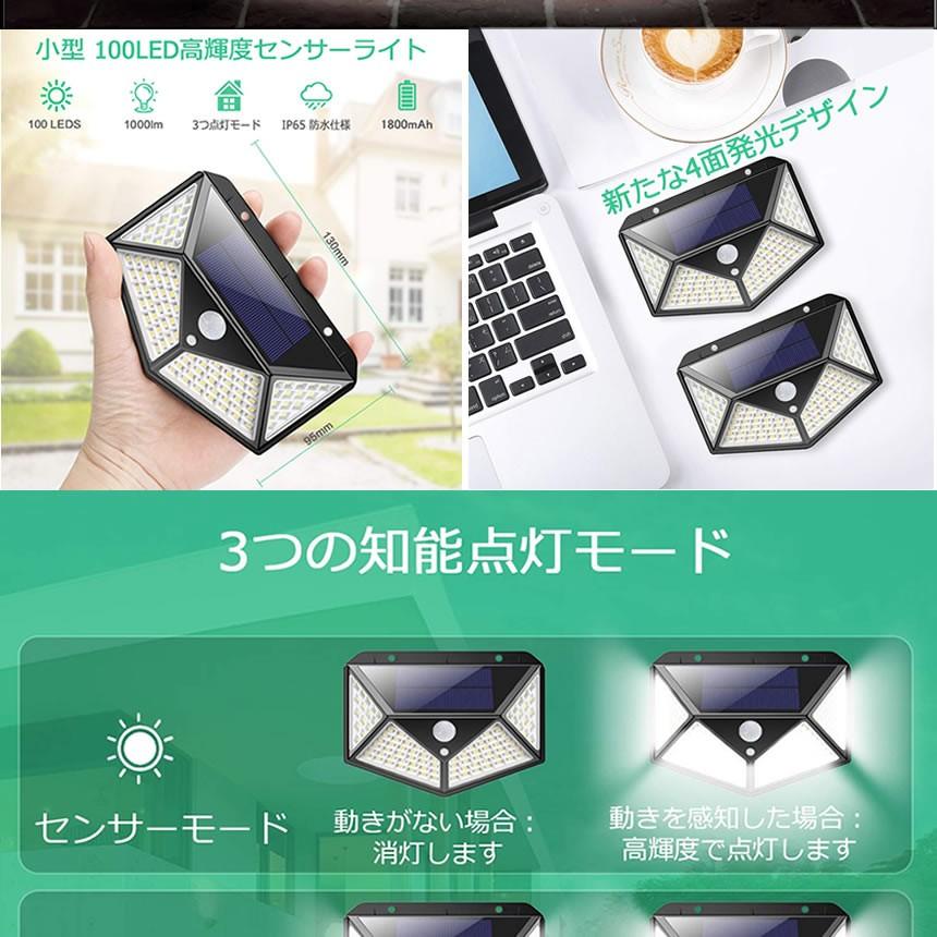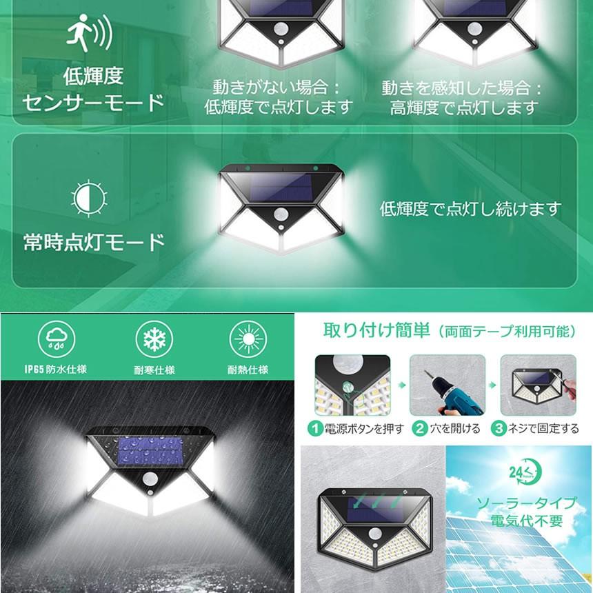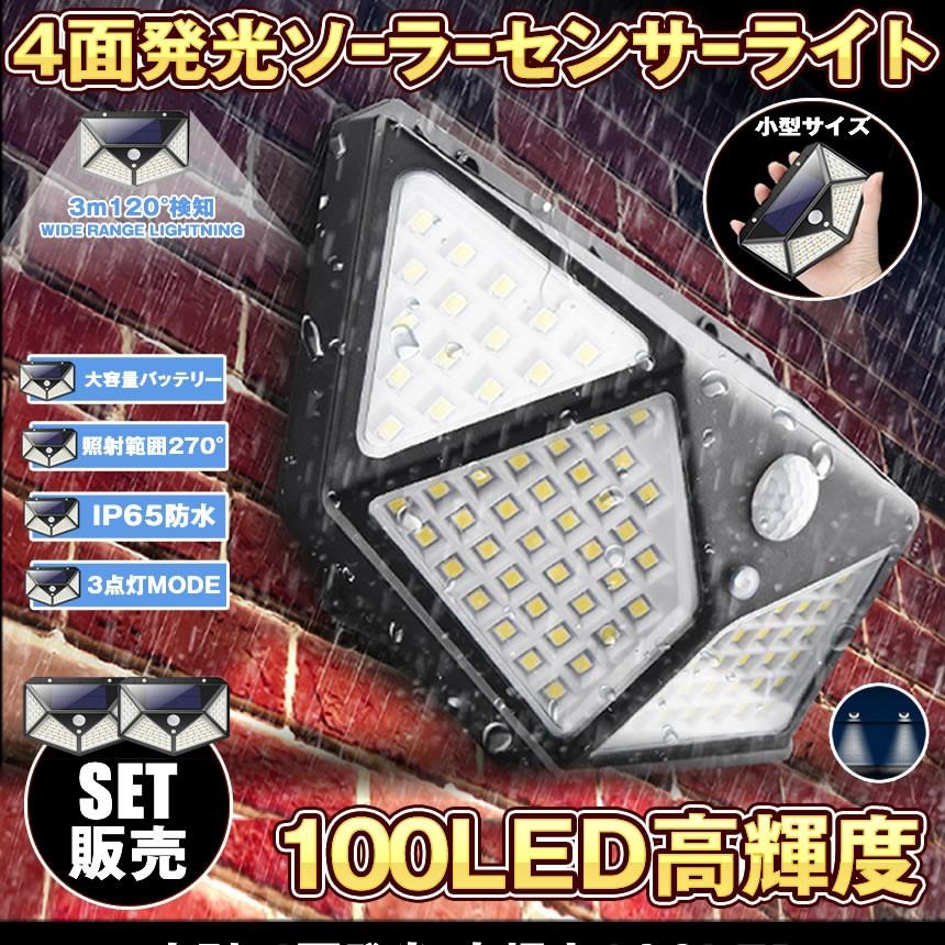 センサーライト 2個セット 屋外 ソーラーライト LED 人感センサー 広範囲 100LED モーションセンサー 玄関 駐車場 庭 防犯 照明 太陽光 2-YOMESENSAR