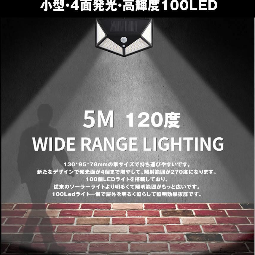 100Ledライト一個で屋外を明るく照らして照明効果抜群です。