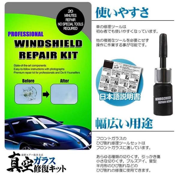 2個セット 真空ガラス修復キット ガラスリペアキット フロントガラス レジン 節約 DIY 窓ガラス 2ヶ所分 ひび割れ補修 カー用品 ガラスリペアー 飛び石 REP01