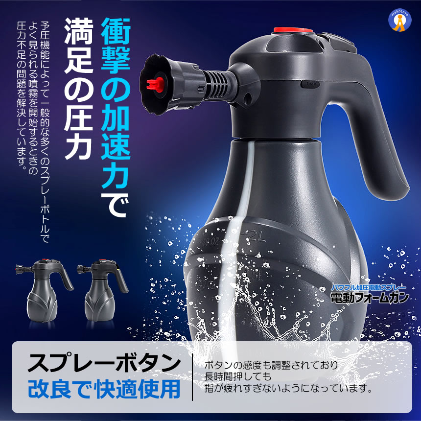 これまでのスプレーとは異なり電動加圧機能を備えているため