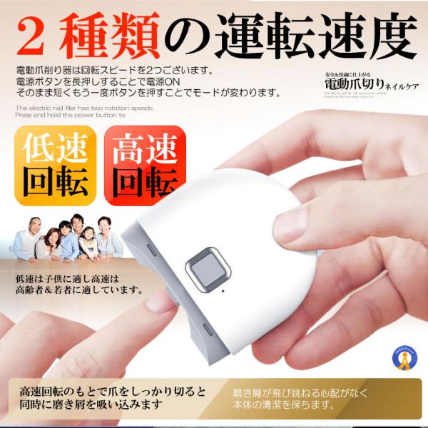 電動爪削り器は回転スピードを2つ持っています。