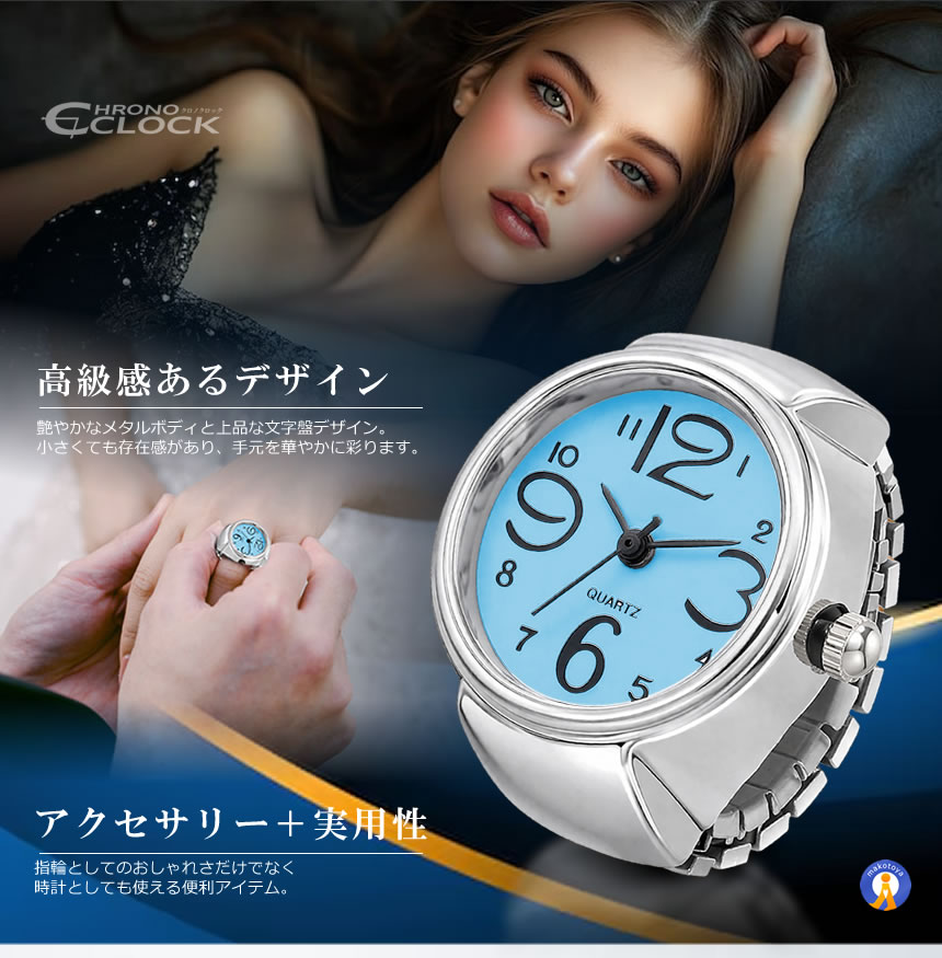 指時計フィンガークロック リングウォッチ 指輪時計 レディース メンズ フリーサイズ おしゃれ FINCLOCK