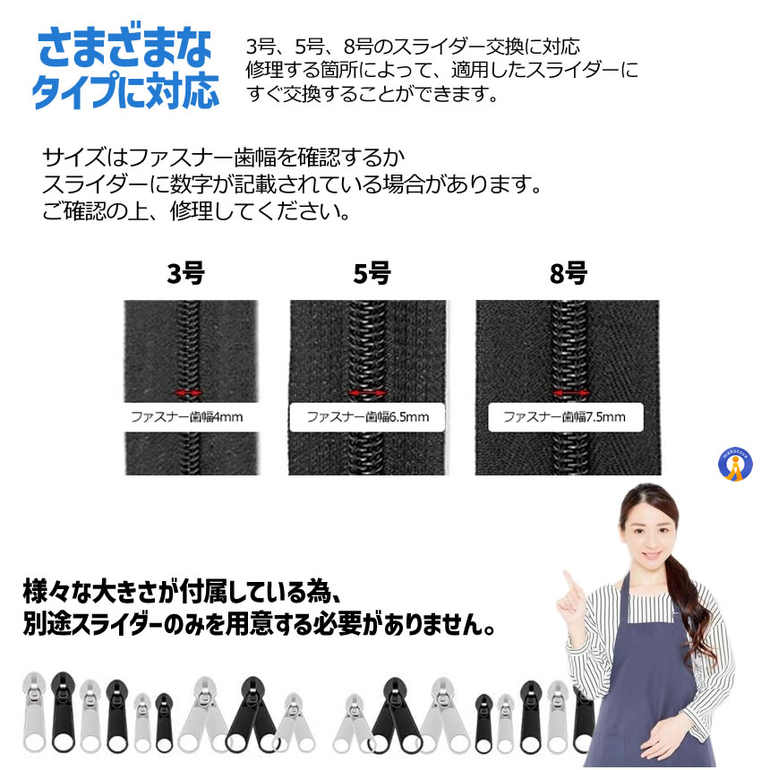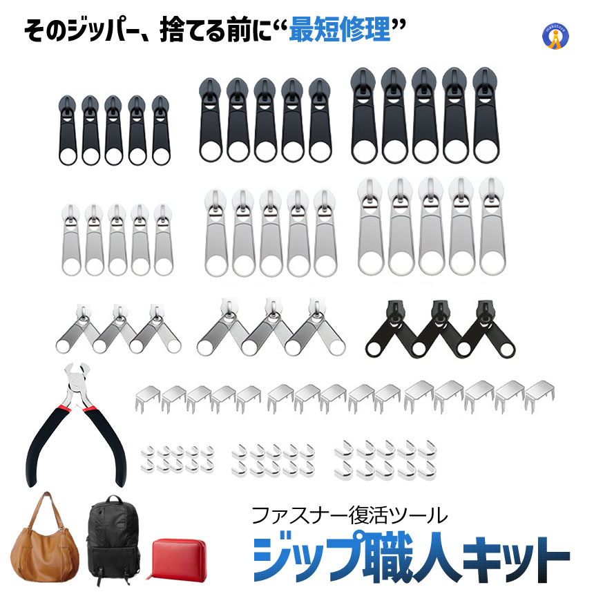 ファスナー修理キット 85点セット ジッパー修理 工具セット スライダー交換 ペンチ付き 簡単修理 応急処置 FASTENER