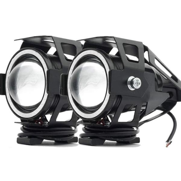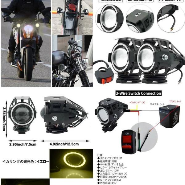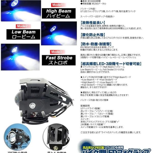 バイク LED フォグランプ 2個 後付け 7000K CREE U7 補助 ライト 汎用 イカリング ブルー 防水 IP67 Hi Lo ストロボ キット 車 2輪車