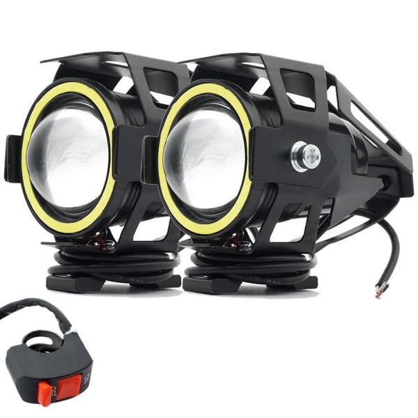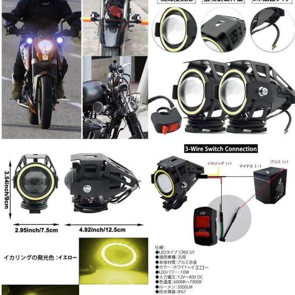 バイク LED フォグランプ 2個 後付け 7000K CREE U7 補助 ライト 汎用 イカリング ホワイト 防水 IP67 Hi Lo ストロボ キット 車 2輪車