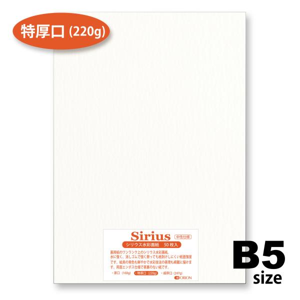 画用紙 水彩紙 シリウス水彩紙 厚口(168g) 50枚入 B5サイズ オリオン