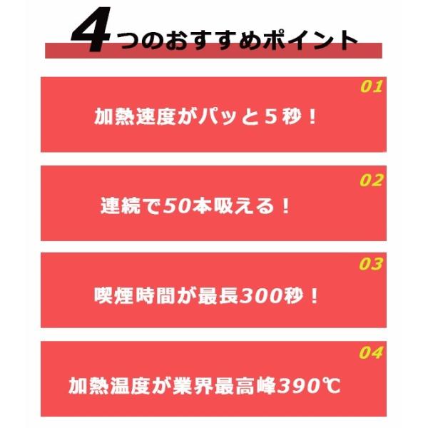 50本連続喫煙可能 最大390℃ 自動クリーニング 禁煙 電子たばこ