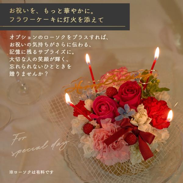 フラワーケーキに灯火を添えてオプションのローソクをプラスすれば、