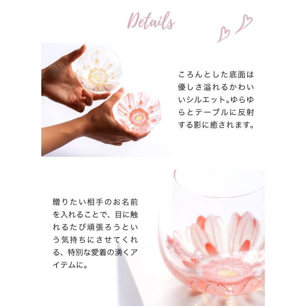 グラス 名入れ おしゃれ コップ 即日発送 花 ゆらゆらグラス 495ml ガーベラグラス ロックグラス 日本製 女性 ガラス 誕生日 記念