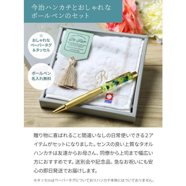 名入れ ハーバリウムボールペン & 今治ハンカチ セット ボールペン 今治 イニシャルハンカチ 女性 プレゼント ギフト 名前入り 卒業 入学 就職 祝い ギフト 送別 即日発送