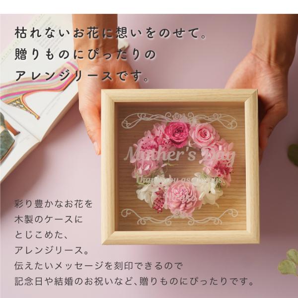 名入れ フレームアレンジ リース プリザーブドフラワー フレーム・リース 女性 妻 プレゼント 花 フラワー 壁飾り おしゃれ 誕生日 記念日 お祝い 出産祝い 開店祝い 結婚祝い リース 飾り方 アレンジ 結婚式 ギフト 電報 メッセージカード ラッピング 母の日