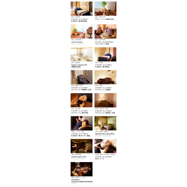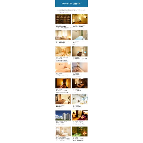 東京を中心とした人気のサロンから、お好きな店舗とコースをお選びいただけます。