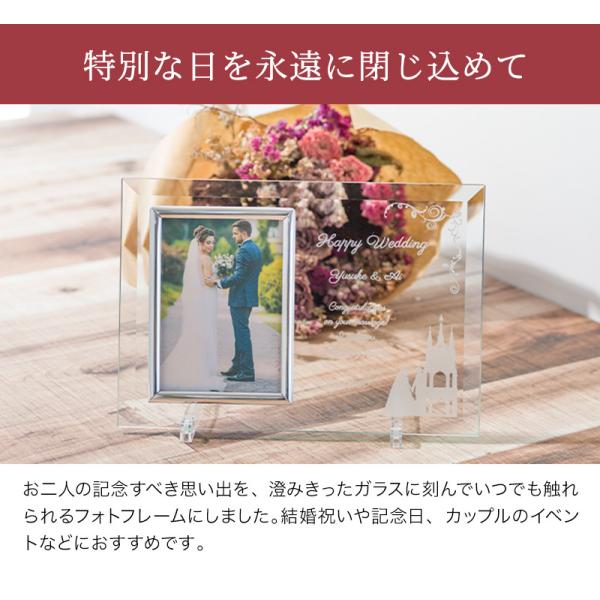 フォトフレーム L判 名入れ クリスタルフォトフレーム 写真立て 日本製 ガラス フォトスタンド メッセージ刻印 結婚祝い ウエディング 即日発送