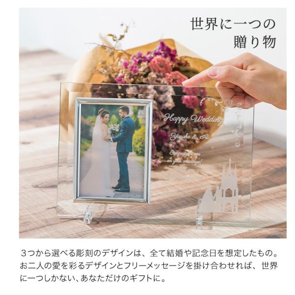 名入れ クリスタルフォトフレーム 写真立て ガラス フォトスタンド 結婚式 結婚祝い ウェディング ブライダル オーダーメイド ウェルカムスペース フォト婚 20代 30代 40代 新婚 カップル 夫婦 ギフト プレゼント 贈り物 最短