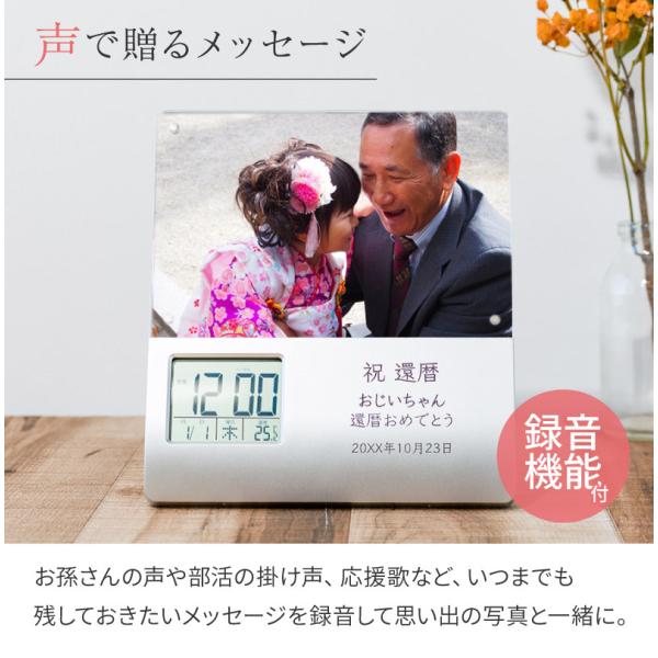 フォトフレームクロック 名入れ プレゼント 70代 80代 祖母 祖父 還暦祝い 古希 誕生日 録音機能 レコーダー 置時計 写真立て 退職 長寿祝い 即日