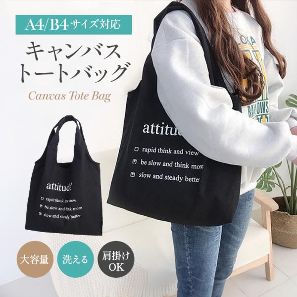トートバッグ a4 エコバッグ レディース おしゃれ キャンバス メンズ かばん ポケット 収納 大容量 軽い 通勤 通学 ブラック かわいい シンプル