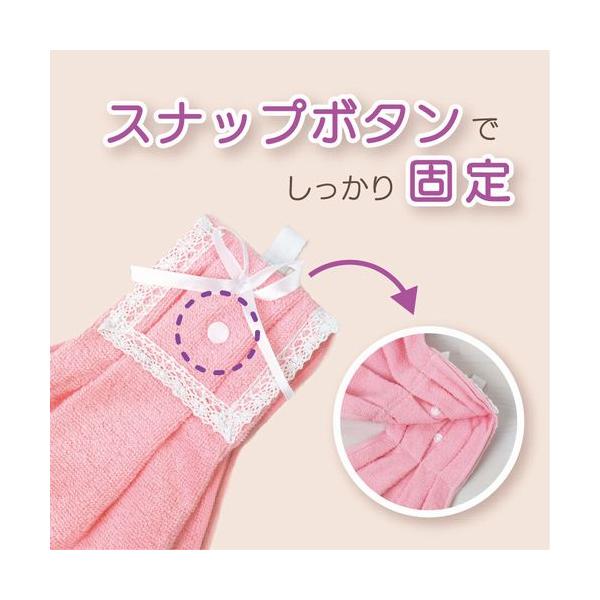 上部にフック・スナップボタン付きなので、タオル掛けからずれ落ちる事もございません。