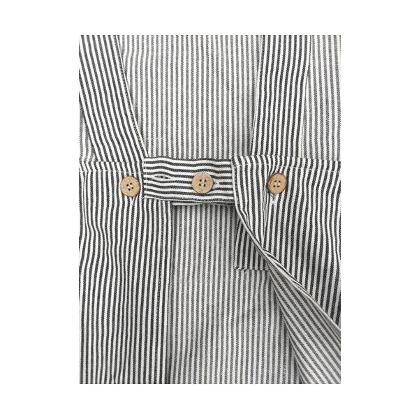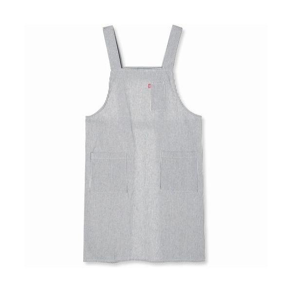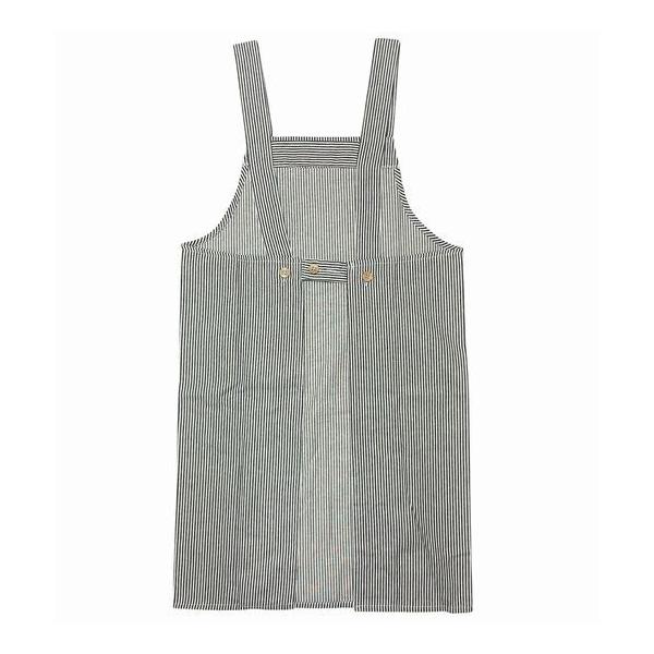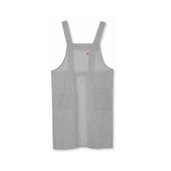 エプロン ストライプ ヒッコリー デニム生地 H型 後ろボタン M L 2L 保育士 業務用 飲食業 ユニフォーム ホテル カフェ 介護 レディース 男女兼用