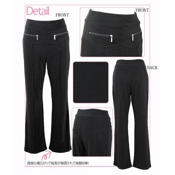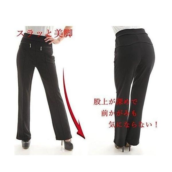 美脚 ストレート パンツ ストレッチ 39-45 ウエストゴム ストレスラックス ブラック ゆったり 大きい サイズ レディース