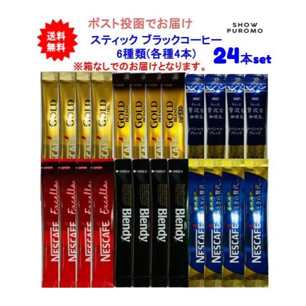 【送料無料】ネスカフェ AGF ブレンディ スティック ブラックコーヒー 6種類(各種4本)アソートセット【24本セット】