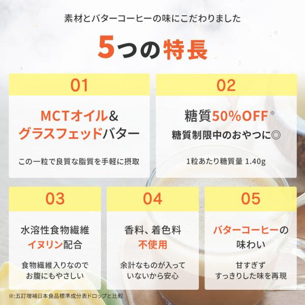 〇原材料:還元麦芽糖水飴(国内製造)、イヌリン(国内製造)、粉末コーヒー、中鎖脂肪酸油(MCTオイル)、グラスフェッドバター、食塩/乳化剤(一部の乳成分を含む)