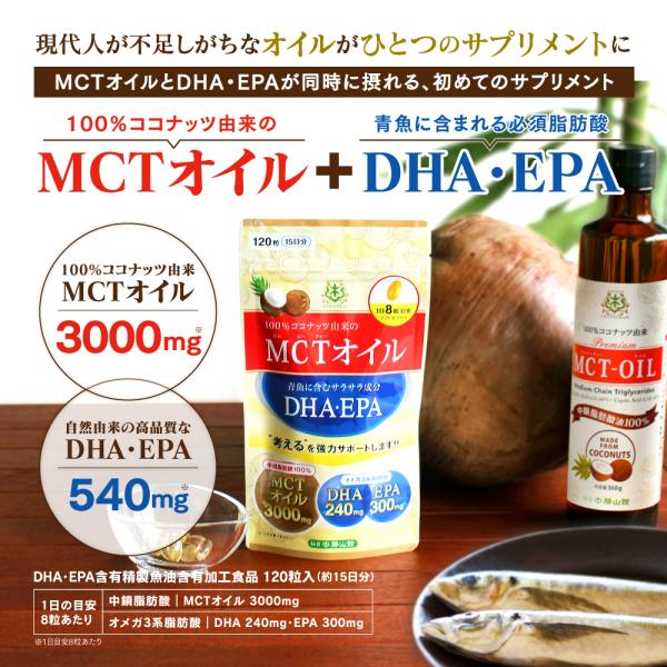 【お得なクーポンあり】MCTオイル 仙台勝山館 + DHA ・ EPA サプリメント 120粒 | オメガ3 必須脂肪酸 中鎖脂肪酸油