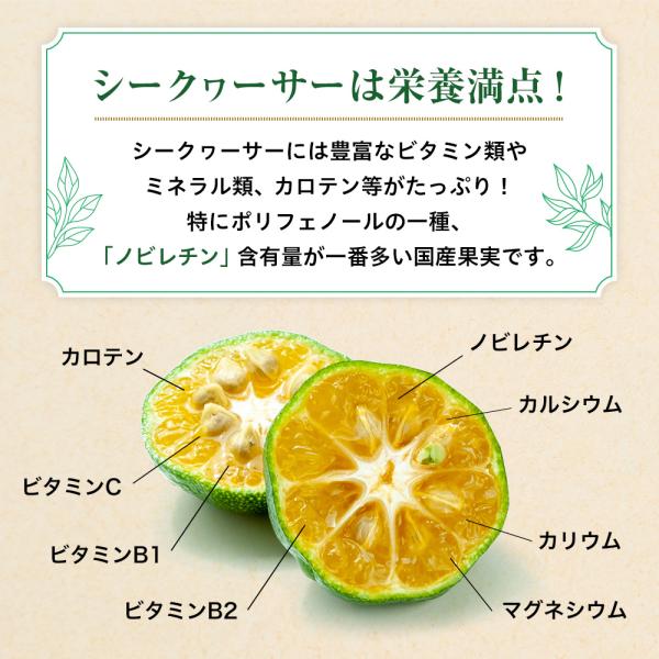 シークヮーサーは豊富なビタミン類やミネラル類、カロテンなどをたっぷり含む果実。