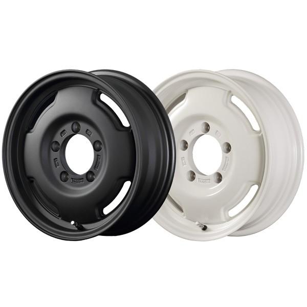 LJやSJジムニーが装着していたスチールホイールを彷彿とさせるレトロデザインのアルミホイール。