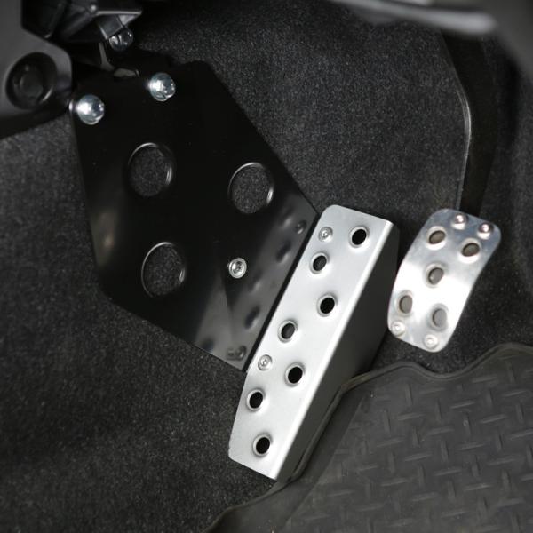 ジムニーのタイトな足元にもスッキリと収まるデザインながら、しっかりと踏ん張ることができドライビングをサポート。