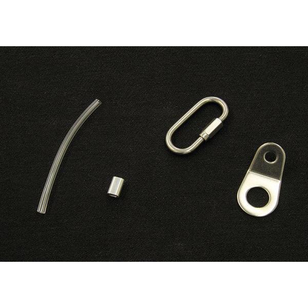 マッドガード3に最適化した「ハンガーワイヤーキット」。ベルトが嫌な方はこれを!●仕様・材質・セット内容:ワイヤー(L450)x1/ジョイントx1/ワイヤー端子x1/かしめx1/保護チューブx1
