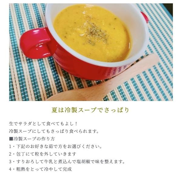 粒皮の柔らかさと、甘さが特徴のとうもろこしで、一粒一粒にはりと光沢があるので、見ても楽しく穂の先端まで実がつまったとうもろこしは上品な甘みが特徴です。