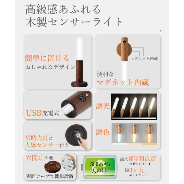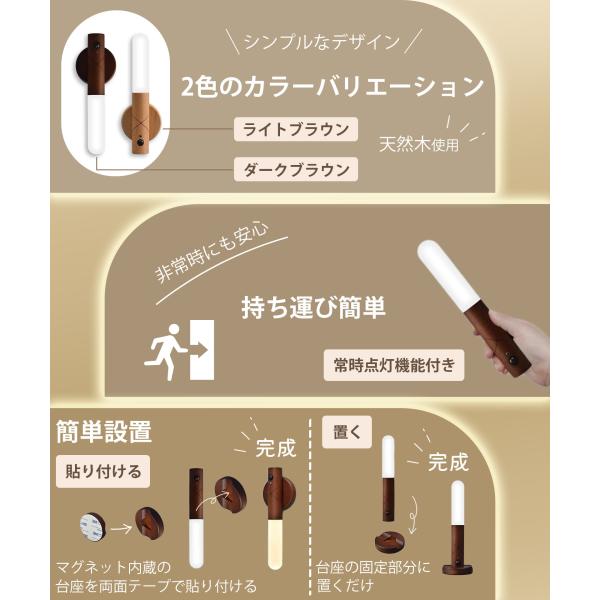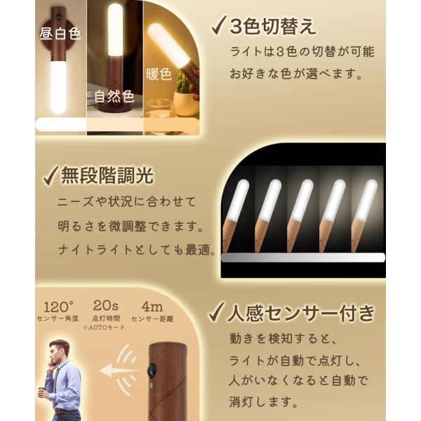 人感センサーライト 多機能 木製 USB充電式 LED 照明 クローゼット LEDライト 室内 玄関 おしゃれ 天然木 屋内 廊下 防災グッズ