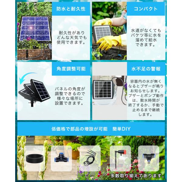 自動水やり器セット ソーラーポンプ式 ソーラー充電 USB充電 散水タイマー 点滴 ミスト ガーデニング ベランダ プランター 植木鉢 鉢植え 自動散水 B063-B065
