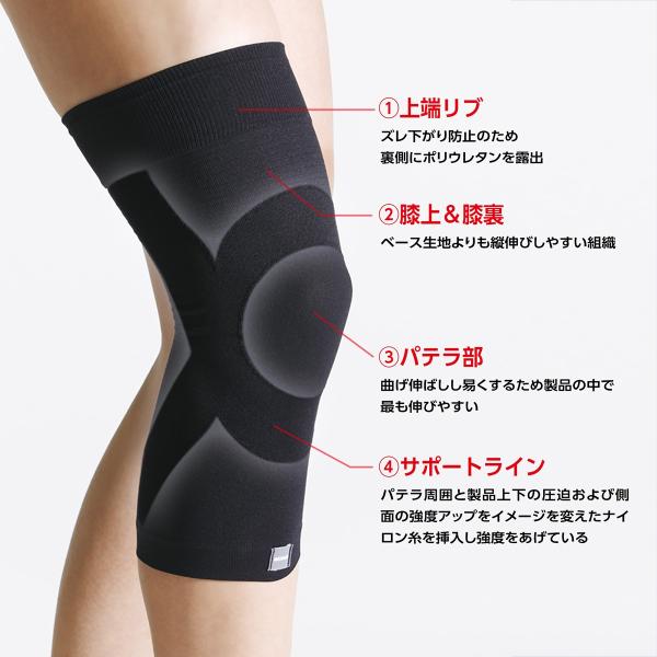 独自のサポートラインによって、太ももから膝まわりをサポートします。