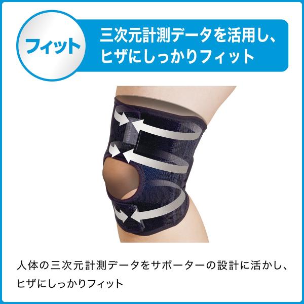 ホールド力のある伸縮素材とアクティブ樹脂ステー(支柱)がグラつきを抑え、ヒザをしっかりサポート。