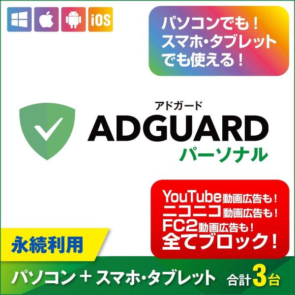 AdGuard パーソナル Win/Mac/iPhone/Android|3台ライセンス|ダウンロード版
