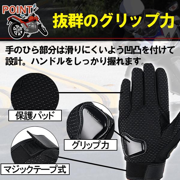 バイクグローブ メッシュ プロテクター 夏 ライティンググローブ スマホ対応 滑り止め 手袋 フィット 安全 安心