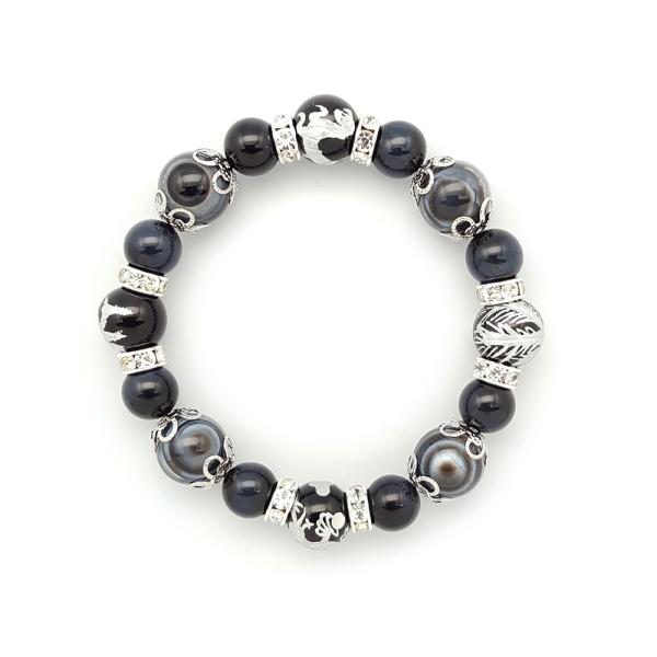 四神獣 シルバーブルータイガーアイエッグドラゴン パワーストーンブレスレット 桐箱付き 神社で祈願・祓い清め済み